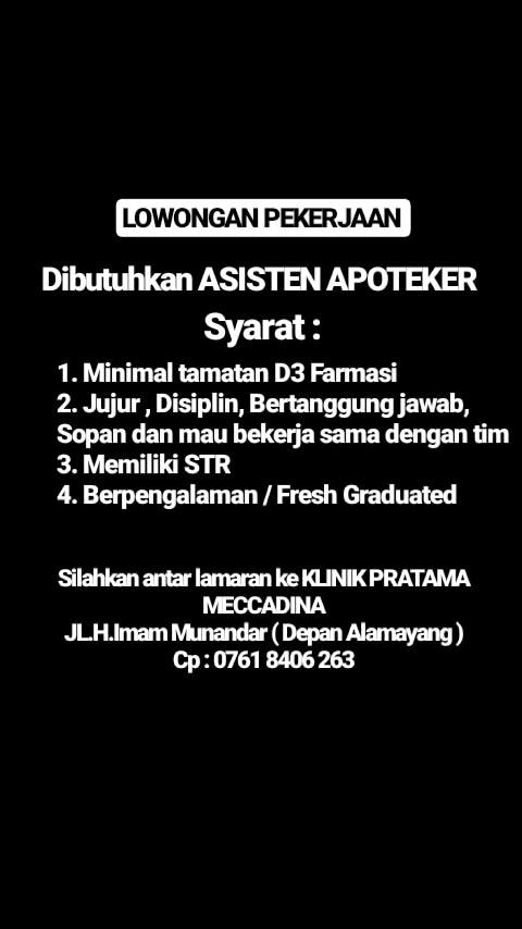 Lowongan Kerja Asisten Apoteker