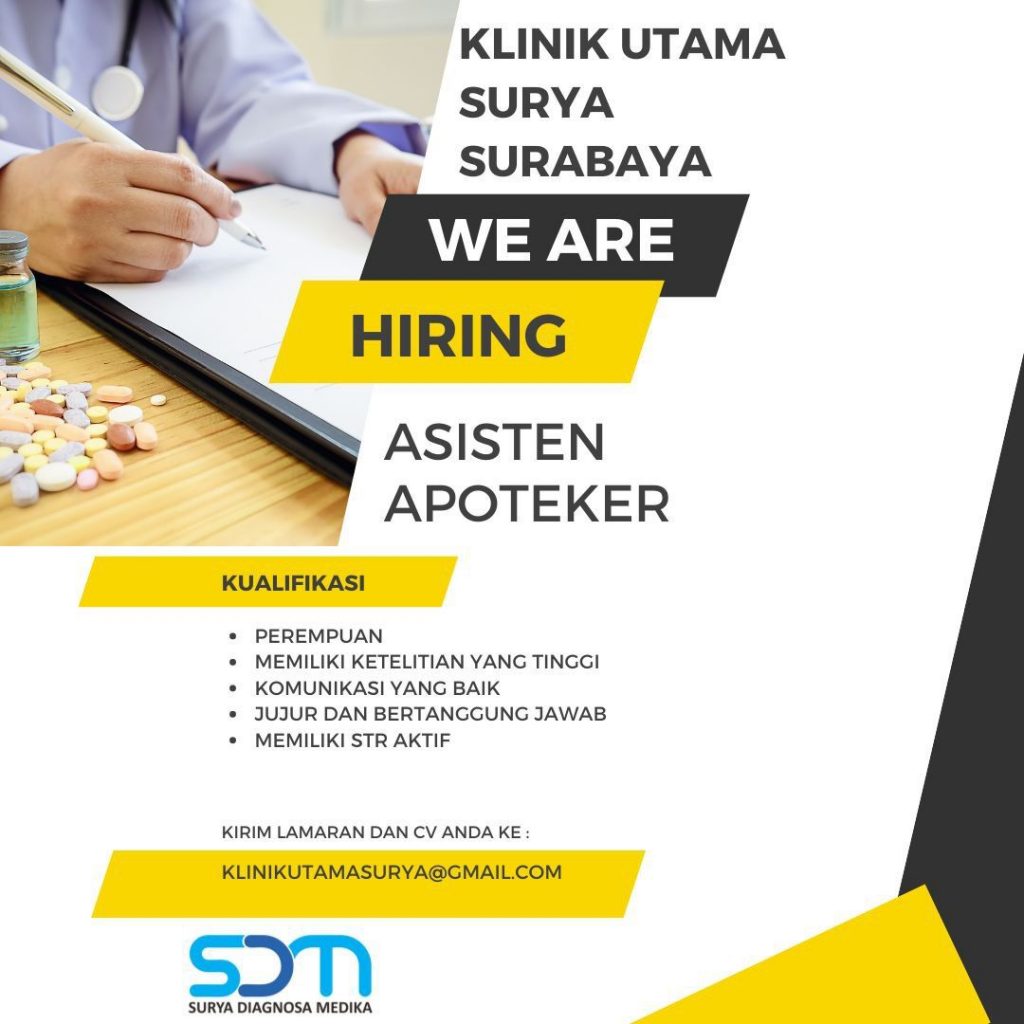 Lowongan Kerja Asisten Apoteker di Klinik Utama Surya Surabaya Bulan November Tahun 2022