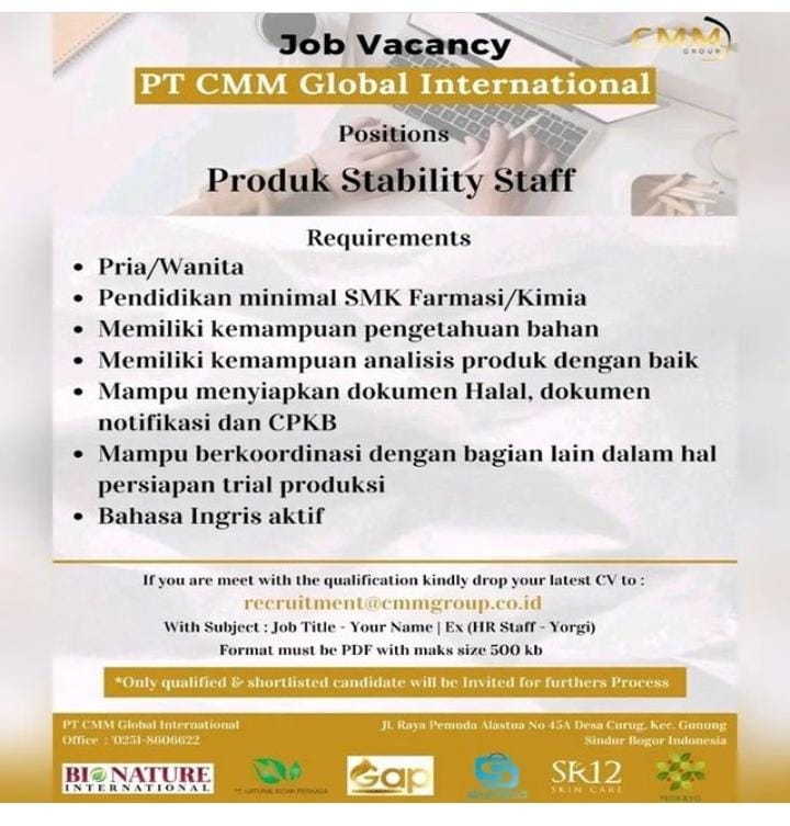 Lowongan Kerja di PT. CMM Global International Bulan Desember Tahun 2022
